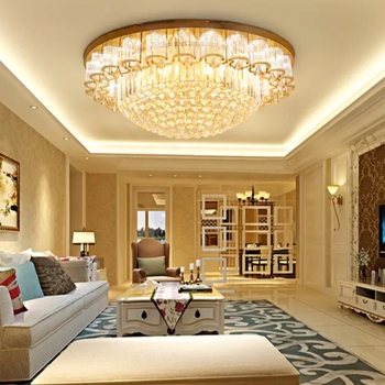 Altın Modern K9 kristal yüzeye monte yuvarlak lüks kristal dikdörtgen tavan avize lamba oturma odası için